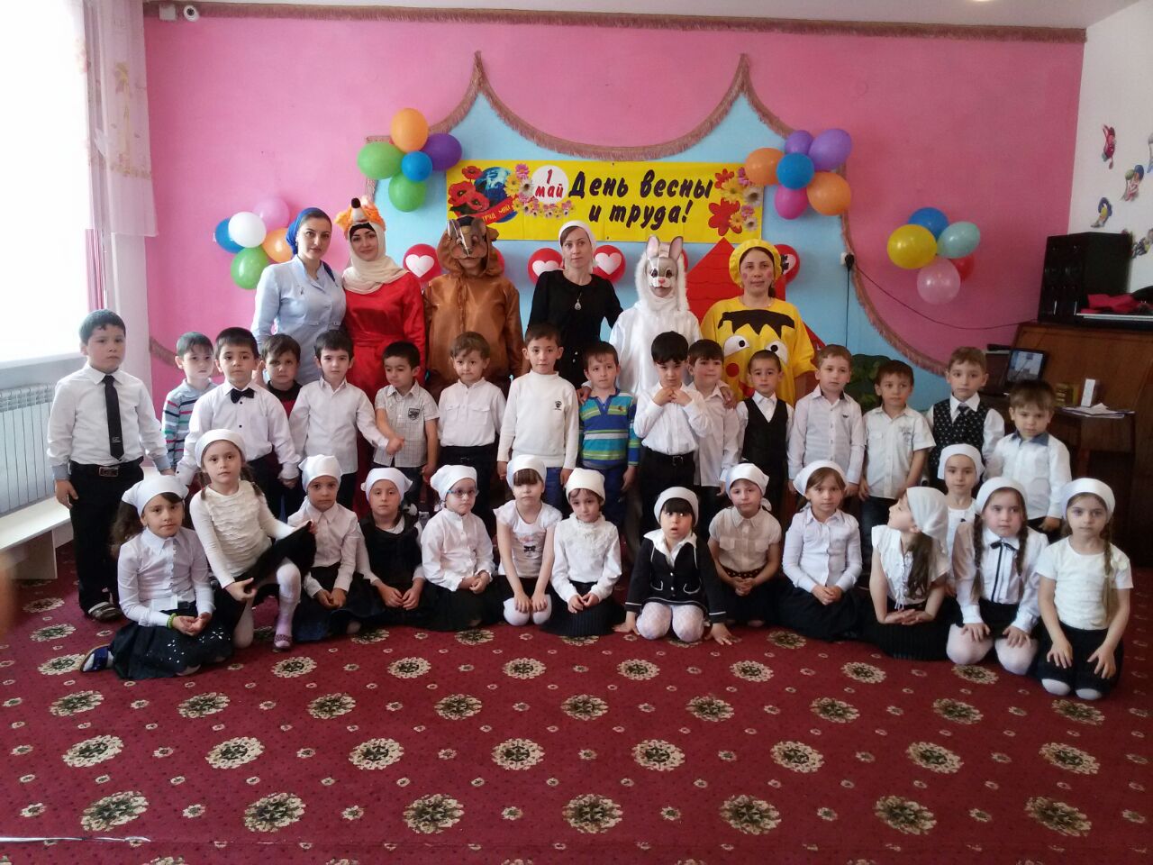 В целях реализации задач по патриотическому воспитанию в ДОУ проведен утренник, посвященный Дню Весны И Труда. Зал был красочно оформлен, дети были нарядны. Они читали стихи и пели песни. Сотрудники показали экологическую сказку "Колобок". В завершении утренника заведующий поздравила всех детей и работников детского сада с этим весенним и теплым днем.