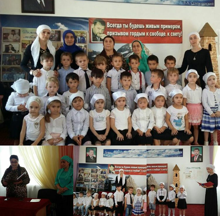 В ДОУ был проведен Музыкально-литературный вечер посвященный памяти о Первом Президенте ЧР Герое России А. –Х. Кадырове, где воспитатели совместно с детьми читали стихи и пели песни, показали сценку. Также были проведены беседы во всех группах "Великий сын своего народа".