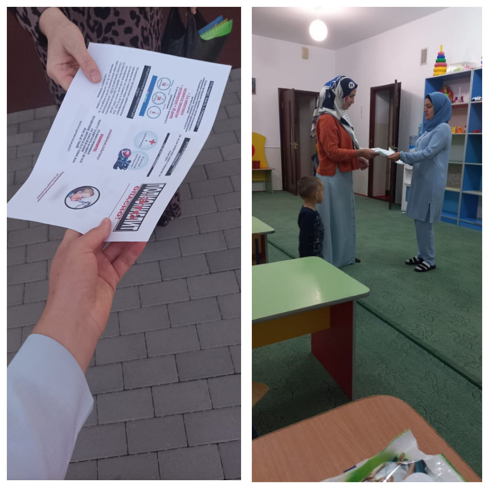 В МБДОУ "Детский сад № 4 "Беркат" организована работа по раздаче наглядного материала-памятки, и просвещению родителей воспитанников о необходимости и важности прохождения вакцинации детей,о последствиях отказа.
