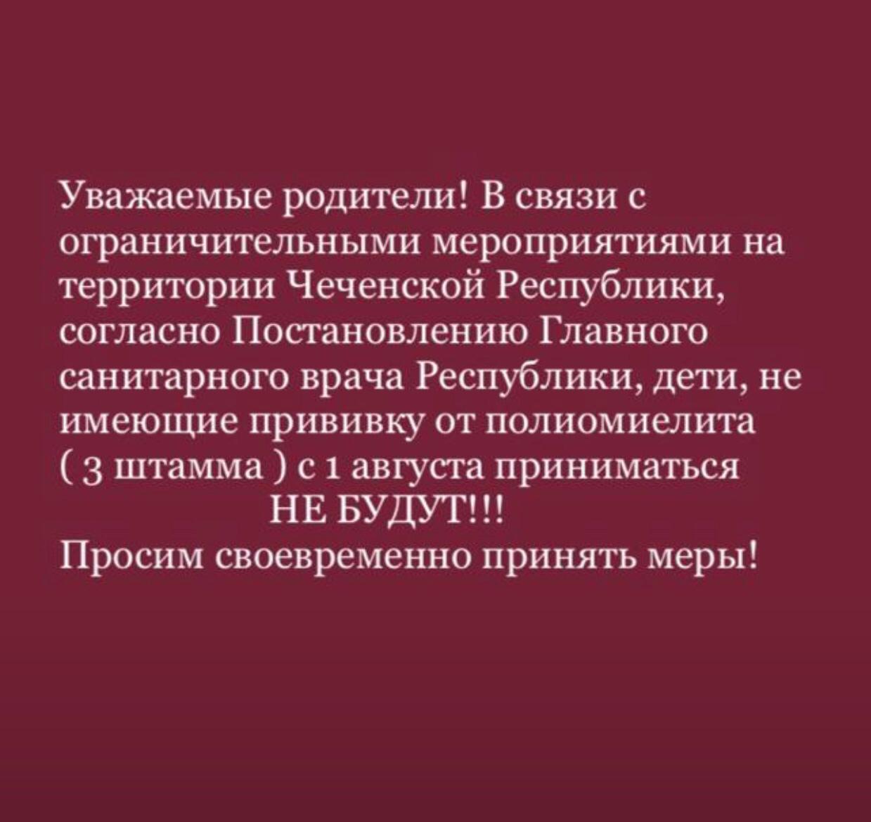 29.07.2019Постановление Главного государственного санитарного врача по Чеченской Республике от 28 июня 2019 № 3 и письмо Территориального отдела Управления Роспотребнадзора о ЧР в г. Аргун от 9 июля 2019 № 09-254. Ссылка на документ : file:///C:/Users/user/Downloads/pdf%20(5 )